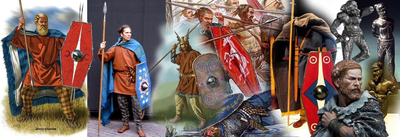 -About their appearance in combat, he pointed out the fact they fought "naked" (which could signify "bare-chested", but does not implies entirely naked like celtic warriors and for the same reasons, see the chapter on the Gaesatae. He also mention "in short cloaks"; This confirm the use of the "chiton" and a smaller version of it, not to be encombered in combat. The Gerimannoz decribed in the illustration had such Chiton. The latter was apparebtly a classic in German men wear, being thick and used as a cloak and warm blanket when sleeping out on the open. This recalls the Thracian Zeira. Germanic warriors had trousers, as shown in many statuettes of latin depictions, but always bare-chested. Contrary to the Gauls they wore no gold. Neither bracelets, arm bands, or torques. Perhaps the only precious item was the Chiton's brooch/fibula/thorn. These trousers seems not baggy in the eastern sense but closer to the legs. The idea of leather leggins and the modern interpretation of trousers tightened with crossed strips around the legs are also a possibility at that time. Since we have no depiction of more ancient Germans it is difficult to conjecture if like the Celts, trousers were a scythian importation. As for tacitus "undergarments, which are not loose like those of the Sarmatians and Parthians, but fit tightly and follow the contour of every limb."
